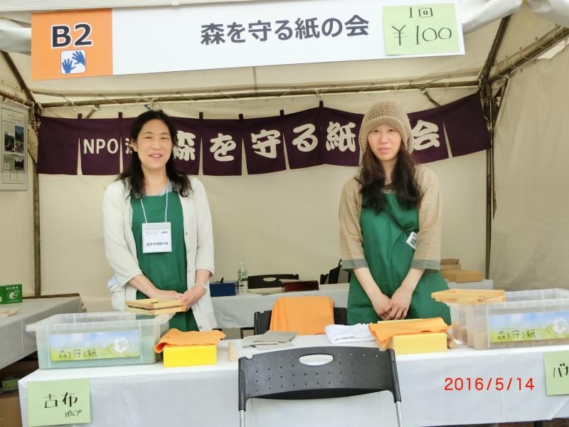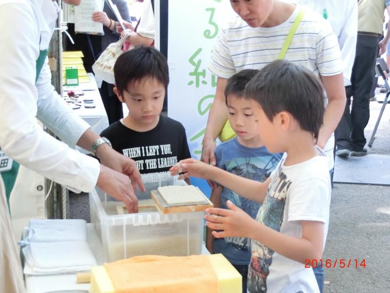 2016年5月14日(土)15日(日)、東京都立日比谷公園にれのき広場等にて開催された、「みどりとふれあうフェスティバル」にて紙漉き体験の出店をしました。
